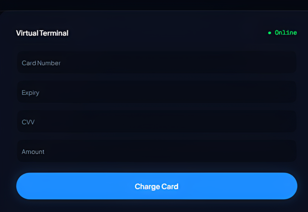 Key in card details directly from any browser. No hardware needed.