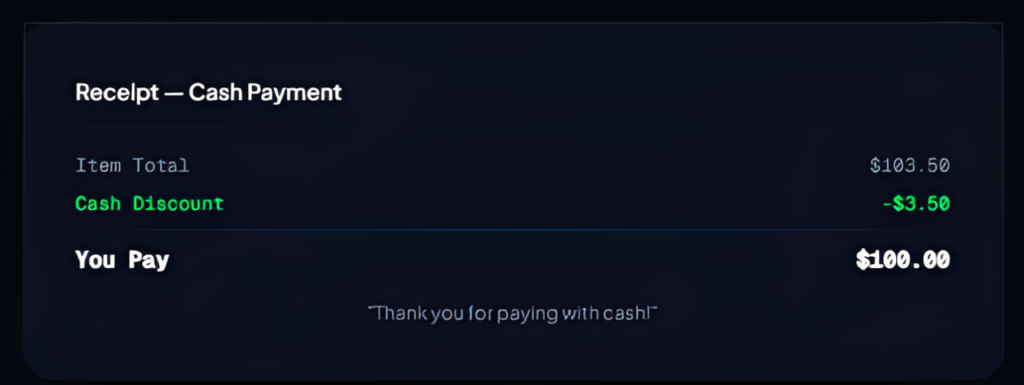 A fully compliant program that offsets credit card processing costs by offering a discount to customers who pay with cash or debit—transparently and automatically.