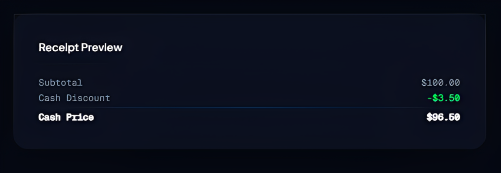 Choose the pricing model that works best for your business. Our Cash Discount and Surcharge programs let you offset or eliminate processing fees—fully compliant and transparent.